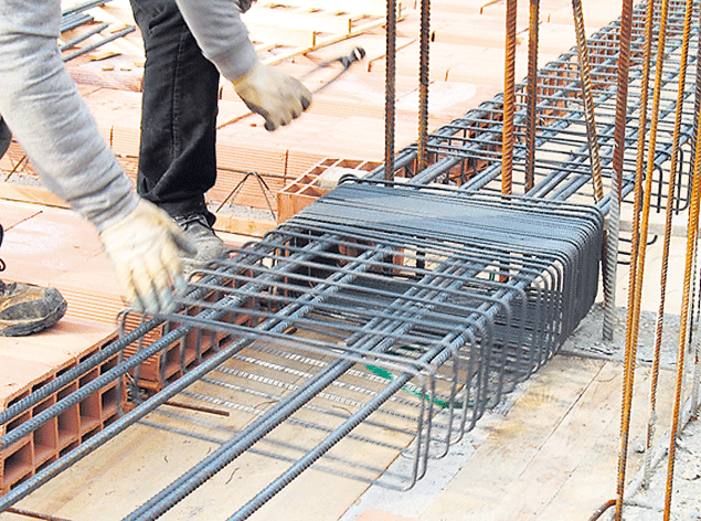 Spirex-beugelwapening laat zich als een harmonica over de langsstaven schuiven. De Italiaanse machine waarmee de wapening uit één lange staaf wordt gebogen kreeg de innovatieprijs op de Matexpo.