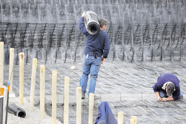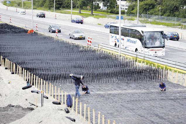 MNO Vervat Wegenbouw maakt bij de aansluiting van de A7 op de Lemmerweg gebruik van Geocell van Tensar. Dat is een matras van met granulaat aangevulde 3D-geogrid, die zorgt voor een gecontroleerde zetting.