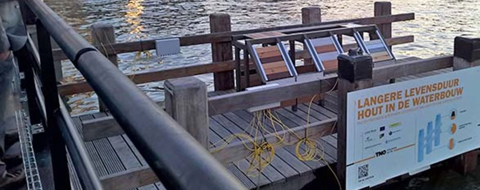 Het Houtdok, een demonstratie- en testplatform in de Aqua Dock-proeftuin in de Rotterdamse Dokhaven, is te water gelaten. "Binnenkort beginnen we met het meten van vocht en vervormingen", meldt projectleider Jan de Jong van onderzoeksinstituut TNO.