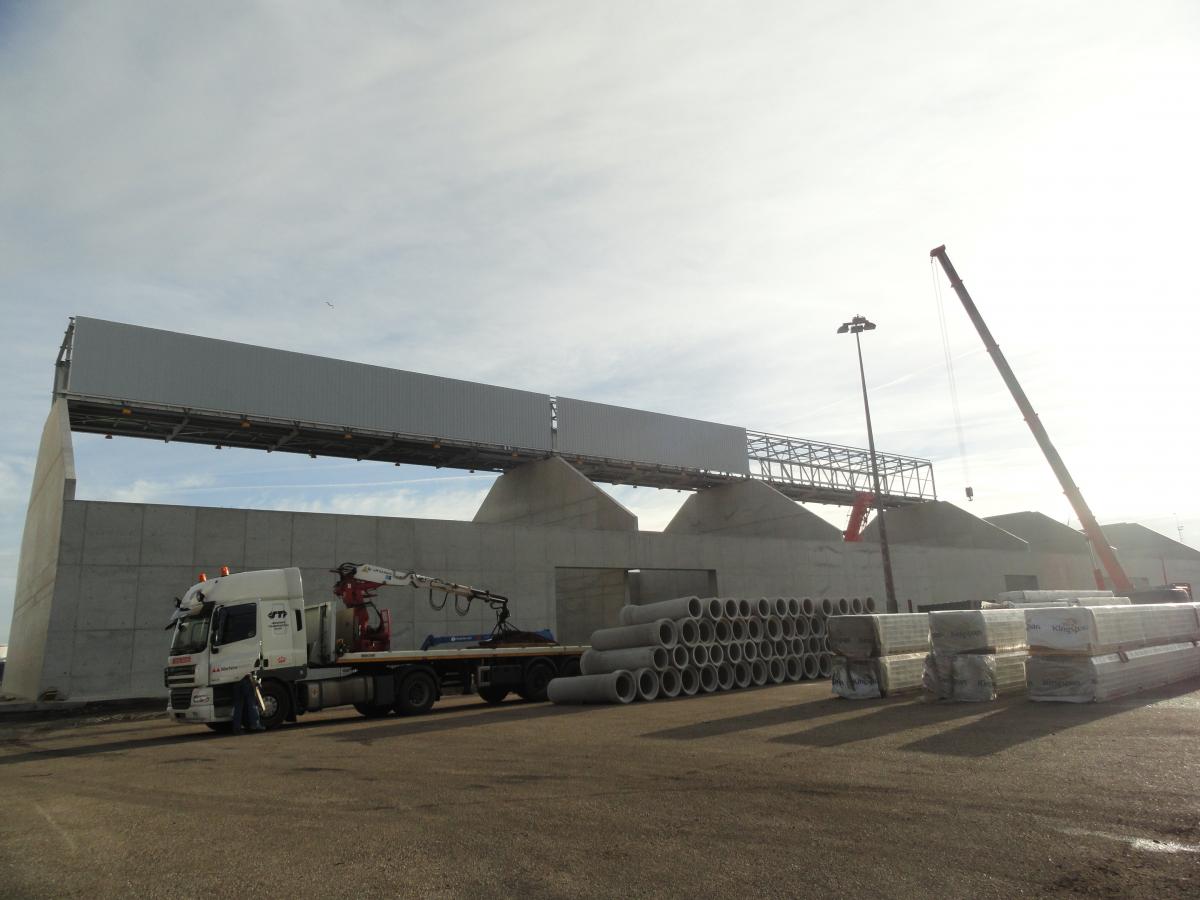 European Bulk Services (EBS) bouwt een vlakloods aan de Beatrixhaven in Rotterdam. NOE Bekistingtechniek uit Arkel leverde de NOEtop bekisting waarmee Cordeel Nederland de betonnen wanden tot 13 meter hoog in een keer kon storten.