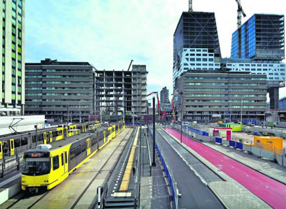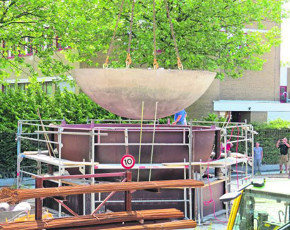TN Sloopwerken uit Scharsterbrug werkt in het centrum van Utrecht aan de zorgvuldige sloop van Cranenborch, het middelste van drie kantoorgebouwen uit de jaren zeventig.