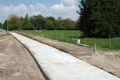 Het fietspad bij de N260 tussen Baarle-Nassau en België is van drie soorten granulaatbeton. De bushaltes zijn van staalvezelbeton zonder traditionele wapening.