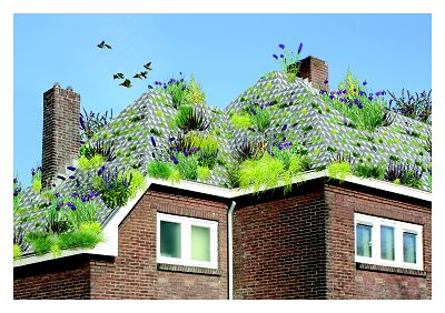 Op een gewoon pannendak groeien geen planten. In het kader van zijn project 'Bloeistad' ontwierp Roel de Boer uit Eindhoven daarom een dakbedekkingselement met de vorm van een trechter.