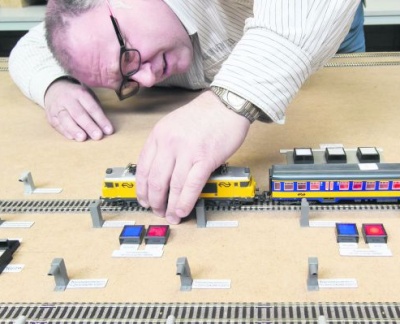 ProRail simuleerde dinsdag de systemen en processen van de spoortunnel in Delft met een modelspoorbaan bij Siemens in Zoetermeer.
