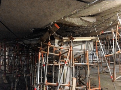 De scheuren in het gebouw Campus Kerkrade zitten niet alleen in de vloeren, maar ook in de kolommen, balken en het metselwerk.
