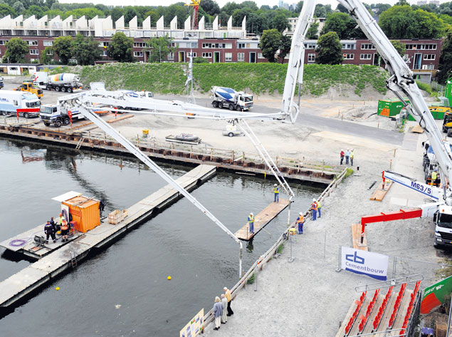 Leiden - De wedloop van de diepste parkeergarage van Nederland is voorlopig beslecht. Na de Groninger Forum garage (17 meter) en Rotterdam Centraal (20 meter) heeft Leiden nu een parkeergarage van 24 meter diep. Op deze diepte onderwaterbeton storten vergt bijzondere kwaliteiten van betonmortel.