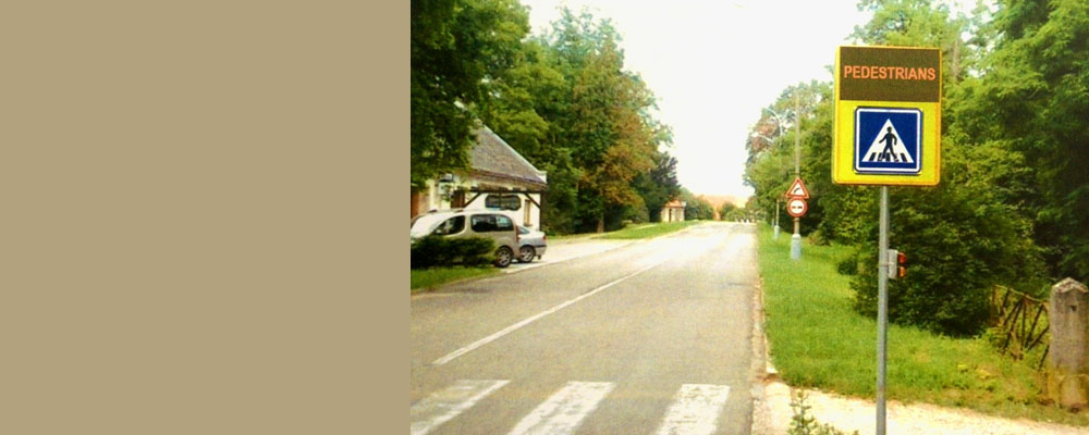 Een interactief waarschuwingsbord helpt voetgangers veilig een weg over te steken. Future Product Design (FPD) uit Praag ontwierp daarvoor een constructie met een bord op een paal met een drukknop.