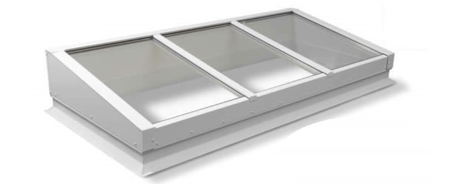 Jet Bik levert zijn compacte glazen lichtstraat Moduglas als bouwpakket. De lichtstraat komt in de vorm van een lessenaar met muuraansluiting of zadeldak.