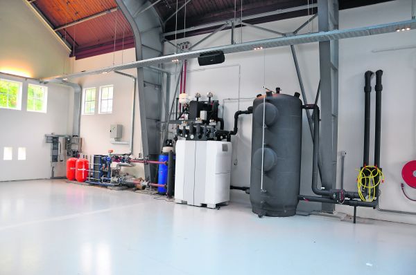 Een adsorptiemachine koelt een van de monumentale panden op het Bouw & Infra Park in Harderwijk. "Uniek voor Nederland", meent Arjan Boonstoppel die met Boonstoppel Engineering de installatie ontwierp.