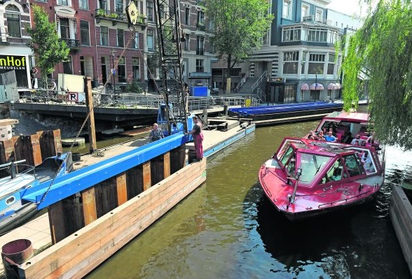 Rijkswaterstaat laat de Muntbrug over het Merwedekanaal in Utrecht opknappen. De van oorsprong draaibrug wordt volgende week vanaf het water uitgehesen.