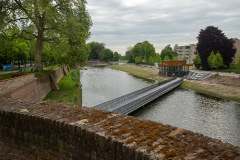 Ruim 14 meter onder de grond biedt parkeergarage Sint Jan in Den Bosch plaats aan 1040 auto's. Een stuk oude stadsmuur en een waterpartij houden de parkeervoorziening uit het zicht.
