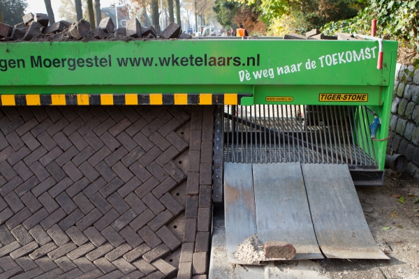 W. Ketelaars Bestratingen verhardt het eigen terrein met mechanisch gelegde betonklinkers en houdt dat met een combinatie van infiltratietechnieken droog. Geïnteresseerden kunnen 15 juli in Moergestel de voortgang bekijken.