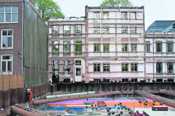 Een paar gevels staan nog overeind van het voormalige Emma Kinderziekenhuis aan de Sarphatistraat/Spinozastraat in Amsterdam.