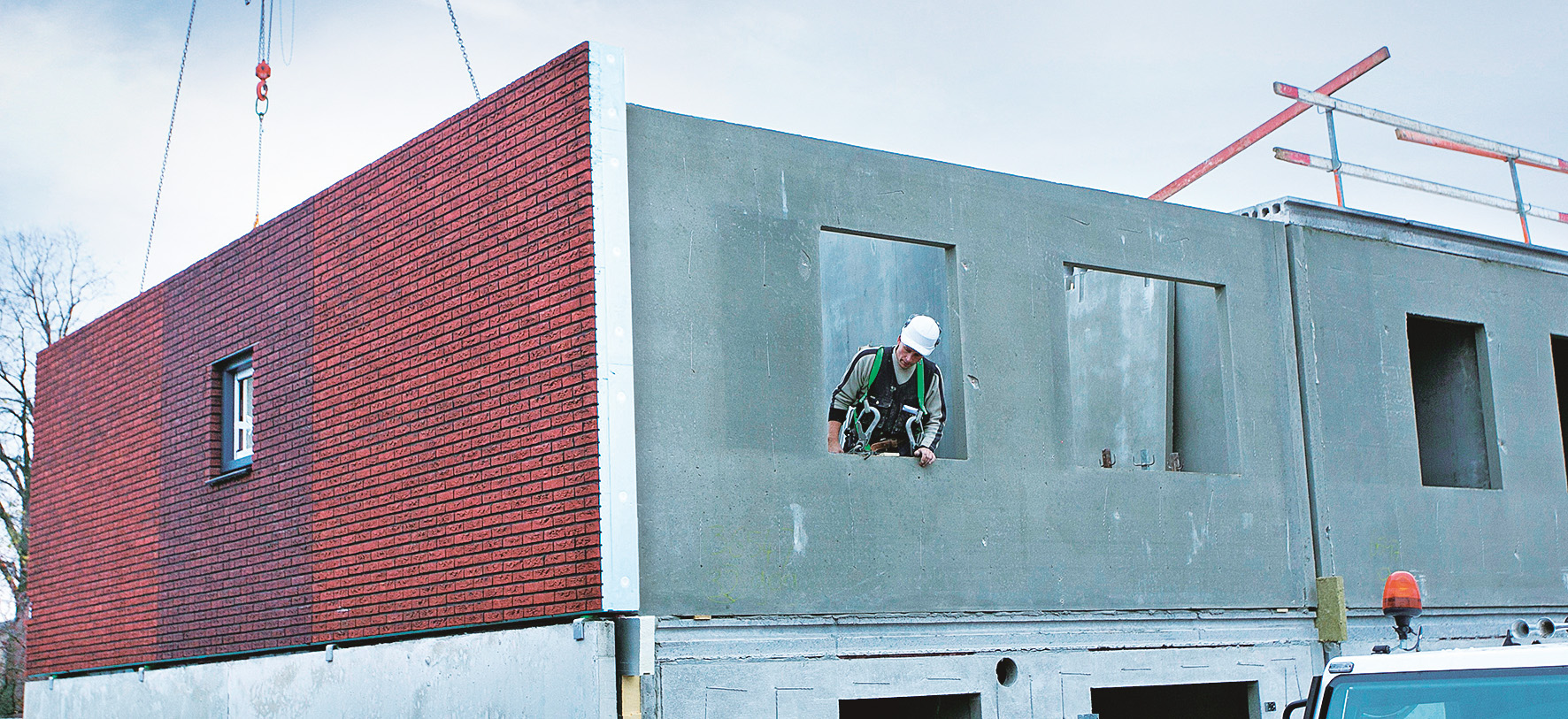 CRH Structural biedt zijn Stalius kant-en-klaar gevel aan met een afwerking van 'echte' steenstrips.