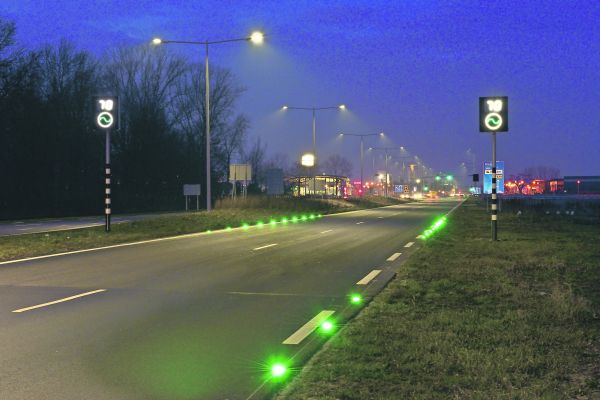 De meest flexibele en robuuste actieve wegmarkeringsinstallatie, noemt Van Gelder Verkeerstechniek de Flowman, die het verkeer over de gereconstrueerde Weg van de Toekomst leidt. Nergens anders dan in Oss geven 3100 ledarmaturen bestuurders een snelheidsadvies.