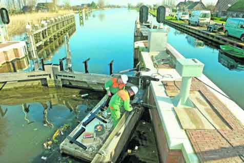 Ooms Construction legt de laatste hand aan de deuren van de Tolhuissluis, op de grens van Noord- en Zuid-Holland vlakbij Nieuwveen.
