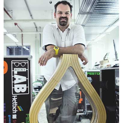 Bij het Bucky Lab van de TU Delft leren studenten bouwkunde om innovatief te denken en hun ideeën praktisch toe te passen. Hoofd van het Bucky Lab Marcel Bilow streeft een verdere professionalisering na en zoekt actief naar samenwerking met de markt. Juist de kennis van het bouwproces is belangrijk, vindt hij. "Studenten moeten de productie beter leren kennen."
