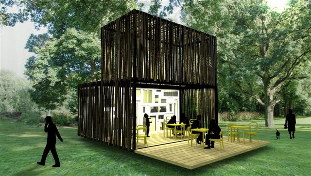 Architectenbureaus SLA en Overtreders W bouwden het afgelopen jaar in een loods een complete bar uit tweedehands materialen. Bedenker Peter van Assche helpt morgen mee om deze Noorderparkbar op zijn plaats te zetten bij de Noorderparkkamer, een cultureel podium in Amsterdam-Noord.