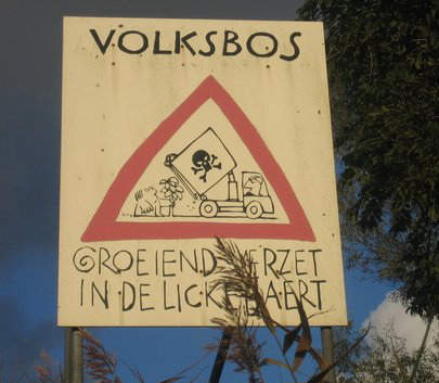 Uit protest tegen de bouw van de Blankenburgtunnel planten inwoners uit Vlaardingen en omstreken zaterdag 16 maart een bos op het tracé.