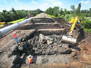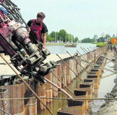 In opdracht van de provincie Zuid-Holland werkt De Klerk Waterbouw uit Werkendam bij Ter Aar aan het vernieuwen van een laad- en loswal in het Ter Aarkanaal. De verouderde en verzwakte kademuur wordt over een lengte van 140 meter vervangen.