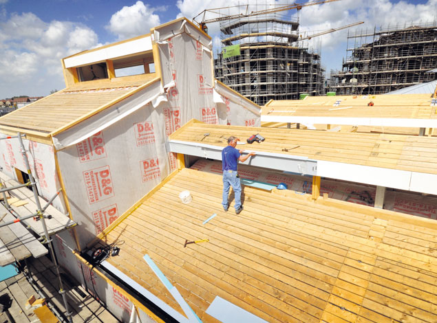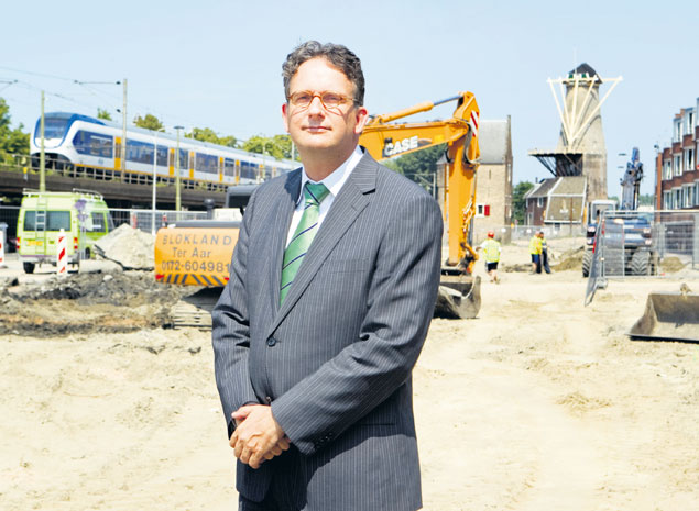Medewerkers van bouwbedrijf Grootheest Bennekom werken in opdracht van Multi Vastgoed aan het Centrumplan Vleuterweide, een woonwijk in Leidsche Rijn.