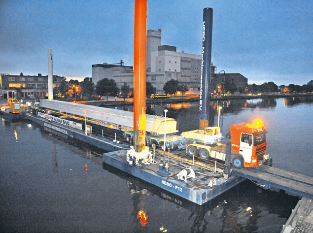 Elke avond tussen 23.00 en 24.00 uur vertrekken uit de betonfabriek van Spanbeton in Koudekerk aan den Rijn twee vrachtauto's van transportbedrijf Van der Meijden met liggers van gemiddeld 40 meter lengte.