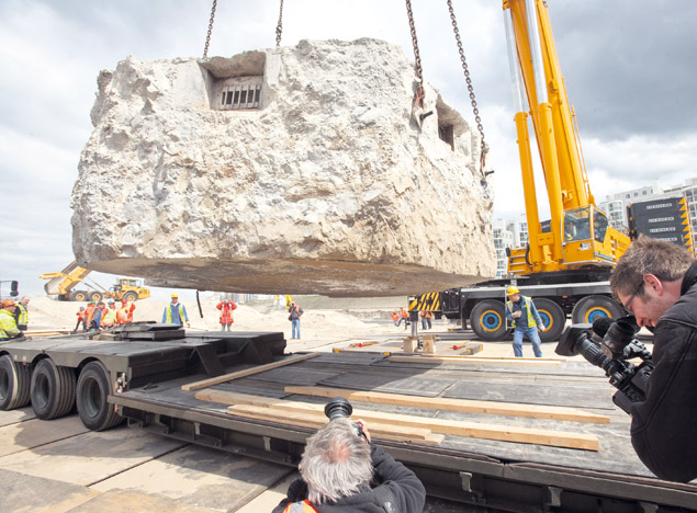 Een Nederlandse kazemat uit de Tweede Wereldoorlog, aangetroffen bij werkzaamheden aan de nieuwe boulevard in Scheveningen, is gisteren op diepladers van de Landmacht naar het Geniemuseum in Vught vervoerd.