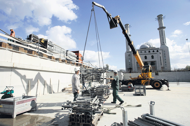Dura Vermeer Beton- en Waterbouw startte gisteren met de montage van de prefab betonnen dakconstructie van parkeergarage de Strip in Rotterdam.