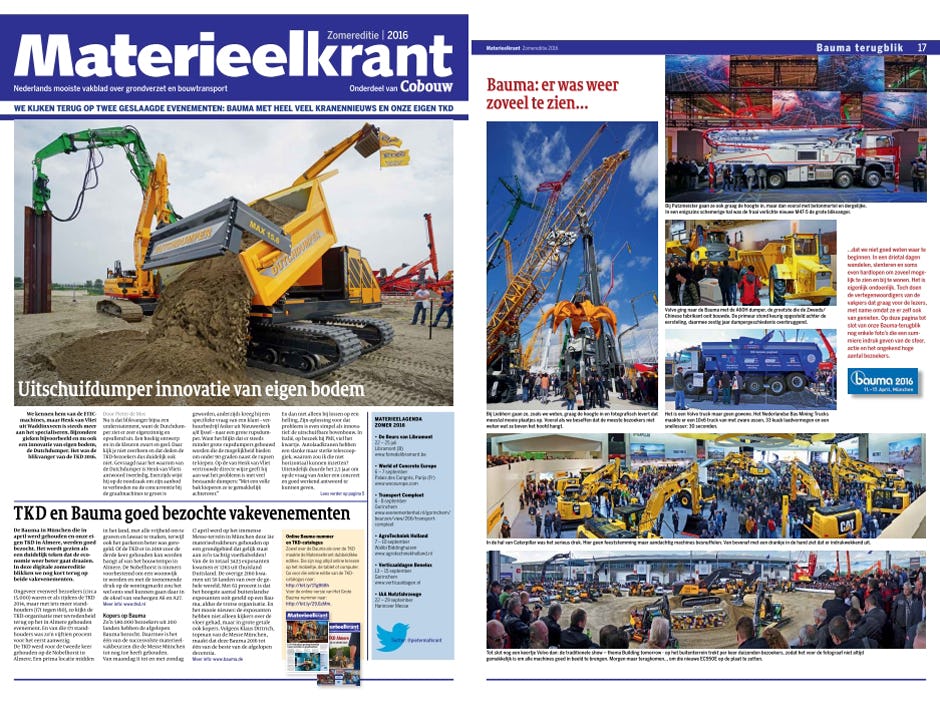 Online lezen van de digitale zomereditie kan via deze verkorte link: http://bit.ly/2a3hbKU. U komt dan uit op de website van ISSUU en daar kunt u nog veel meer magazines gratis lezen, zowel van de Materieelkrant als van enkele concullega's uit binnen- en buitenland. De link voor de directe download van de pdf-versie is: http://bit.ly/2a0XvGz. TKD