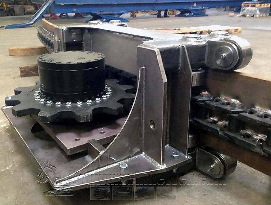 De aandrijving is gemaakt voor carrousels op schepen die kabels trekken naar windmolenparken op de bodem van de zee, zo meldt onze mediapartner bouwmachineweb.com. De haspel waar de kabel in ligt weegt ruim 4000 ton. Deze kabel wordt afgerold door eindaandrijvingen. Dit zijn dezelfde aandrijvingen die ook gebruikt worden door graafmachines. De aandrijving die is