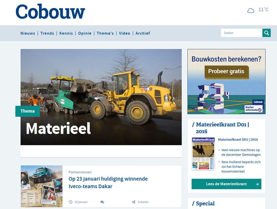 We weten hoe vluchtig nieuws kan zijn. Daarom publiceren we zo af en toe (online) bladerversies over speciale thema's, vakbeurzen enzovoort. Dat gaan we dit jaar meerdere keren doen. Van de zomer bijvoorbeeld met een terugblik op de materieelvakbeurs Bauma die in april wordt gehouden en waarvan we verwachten dat er heel veel nieuws vrijkomt.