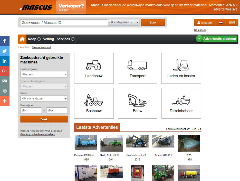 Mascus is momenteel actief in Europa, Azië, Afrika en Noord-Amerika, daarbij inspelend op de materieelbehoeften in sectoren zoals de bouw, transport, landbouw, overslag, bosbouw en terreinbeheer. Mascus exploiteert een dynamische online marktplaats voor materieel, met meer dan 360.000 items in de verkoop en 3,2 miljoen maandelijkse websitebezoeken uit 58 landen en in 42 talen. Het