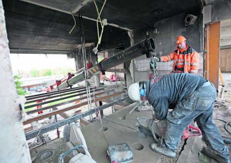 Door een zware gasexplosie in een flat aan het Driemondplein in Arnhem-Zuid raakten half augustus vijftien appartementen zwaar beschadigd. Omdat de vleugels via de vloeren waren gekoppeld aan de kern, werd ook de constructie van de flat getroffen.