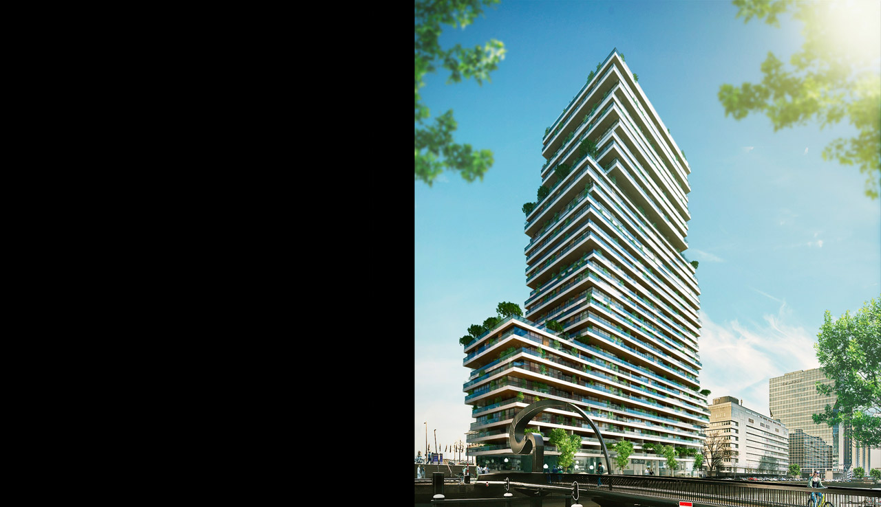 'The million dollar view of the River Maas': zo omschrijft Neo Teck Pheng het uitzicht van de toekomstige bewoners van het nieuwe woongebouw aan de Boompjes 55-57 in Rotterdam. Neo Teck Pheng is CEO van First Sponsor Group Limited uit Singapore, de eigenaar van het circa 110 meter hoge gebouw aan de Maas.