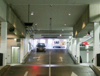 Onder het splinternieuwe winkelcentrum in Diemen ligt een parkeergarage. Die heeft één praktisch probleempje: de uit/ingang mondt direct uit op een voet- en fietspad. Dat heeft al menig conflict opgeleverd. Wethouder Lex Scholten (PvdA), die het centrumplan in zijn portefeuille heeft, blijft er kalm onder.