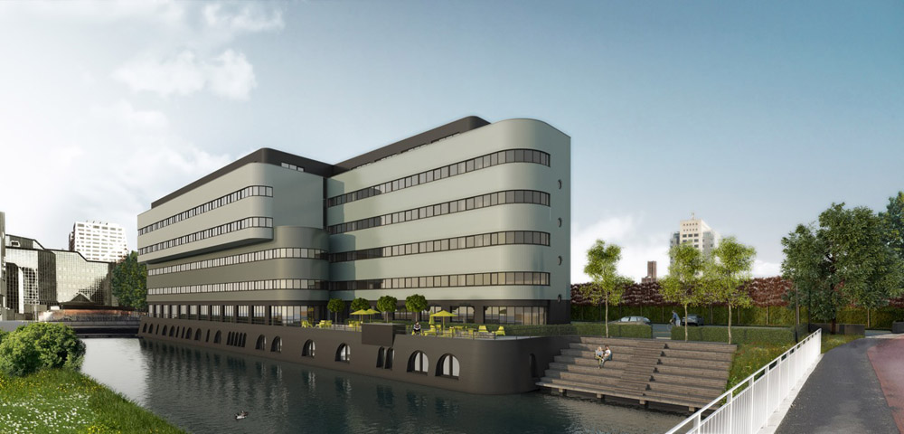 Voor het verlaten rangeerterrein ter hoogte van de Vierhavensstraat zocht de gemeente Rotterdam een nieuwe invulling. De gemeente wilde bedrijvigheid, de omwonenden wilden graag een park. Samen kwamen ze eruit. Het resultaat: een bedrijfsgebouw met een stadspark op het dak.