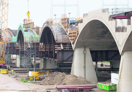 In Nederland gebeurt het niet vaak dat brugbogen eerst door een anker bijelkaar worden getrokken, om eenmaal gereed tegen de steunpunten te duwen.