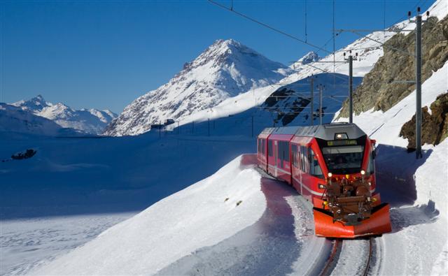 Die große Siberische Kälte' is ingevallen in Oberland met temperaturen van dik beneden de 20 graden Celsius en er valt veel sneeuw. Toch rijdt onze trein stipt op tijd. Geen gereduceerde dienstregeling of bevroren wissels.