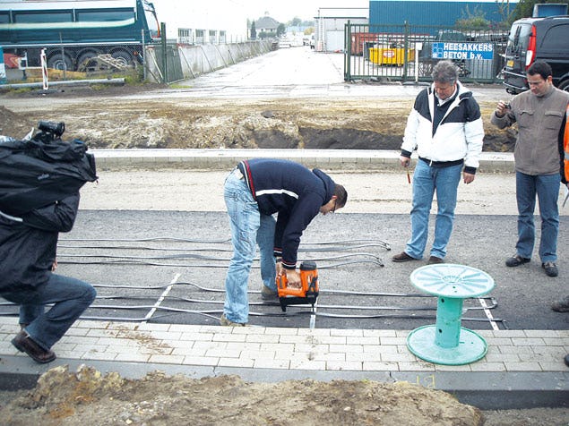Een elektrisch verwarmingssysteem met linten van een amorf-metaallegering zou een belangrijke bijdrage kunnen leveren aan het sneeuw- en ijsvrij houden van infrastructurele werken.