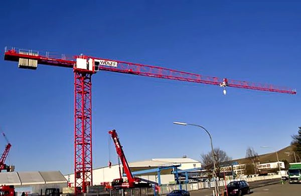 Tijdens Matexpo liet Wolffkran een nieuwe spitsloze (flat top) loopkatkraan zien. Deze Wolff 6015 clear van de meer dan 150 jaar oude kraanspecialist Wolffkran vervolledigt de Clear Line (flat top kranen) naar beneden toe.