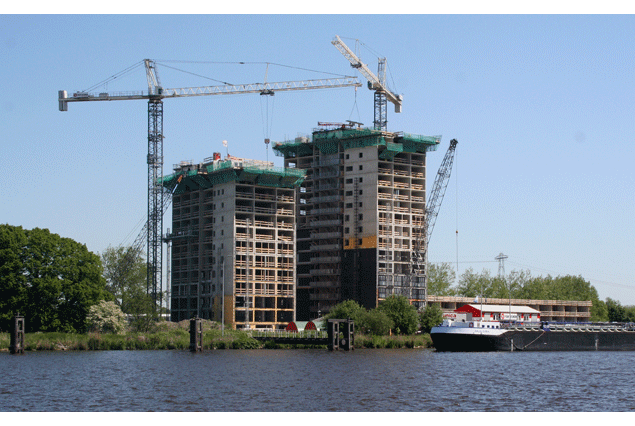 De skyline van Groningen verandert in ijltempo. Op de plek waar het Eemskanaal en het Van Starkenborghkanaal elkaar ontmoeten verrijst de Tasman Toren. Opvallende hoogbouw bestaande uit twee met elkaar verbonden torens die samen 218 appartementen tellen. Elke week komt er een verdieping bij door koude gietbouw, waarvoor de betonmortel in een stijgleiding naar boven wordt gepompt.