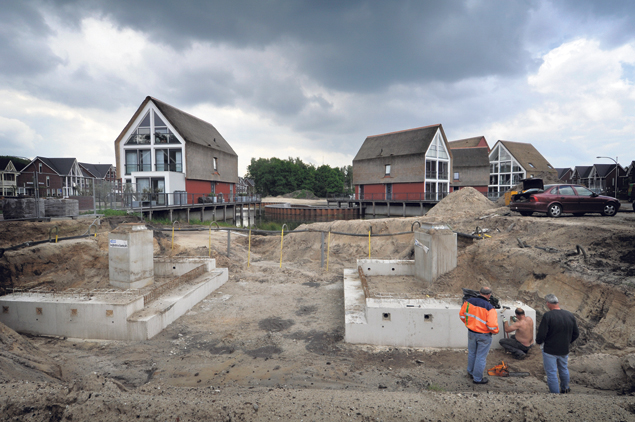 In opdracht van de gemeente Nunspeet wordt gewerkt aan brugfunderingen naast het door Van de Wetering gebouwde appartementencomplex de Parelhorst.