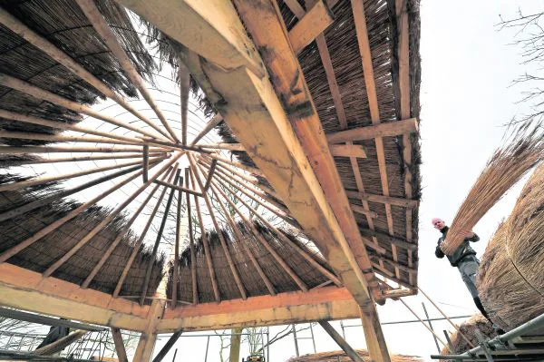 Een kapitale hooischuur met rieten dak maakt de nieuwbouw van een boerderijwoning in Vollenhove compleet. Rietdekker Luuk van der Linde leeft zich helemaal uit op de ouderwetse nieuwbouw.