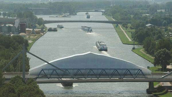 Christo kwam er niet aan te pas bij het inpakken van de Juthpasebrug over het Amsterdam-Rijnkanaal. 'Gewoon' Rijkswaterstaat voorzag de boog van de brug afgelopen weekend van folie waarmee het schilderen kan beginnen.