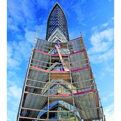 In Utrecht wordt langs de A12 een 34 meter hoge toren als blikvanger van een nieuw Transferium uit de steigers gehaald.