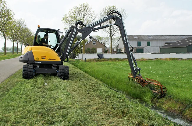 De Smits Groep uit Nederhemert heeft het machinepark uitgebreid met een Mecalac 8MCR berm-/slootmaaimachine. De machine is gekozen vanwege zijn snelheid.