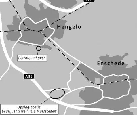 Op slechts 4 kilometer van Enschede voltrekt zich momenteel een olieramp. Zolang onduidelijk is hoe de olie kan weglekken willen de gemeenten uitstel van de geplande gasolieopslag in het industriegebied De Marssteden.