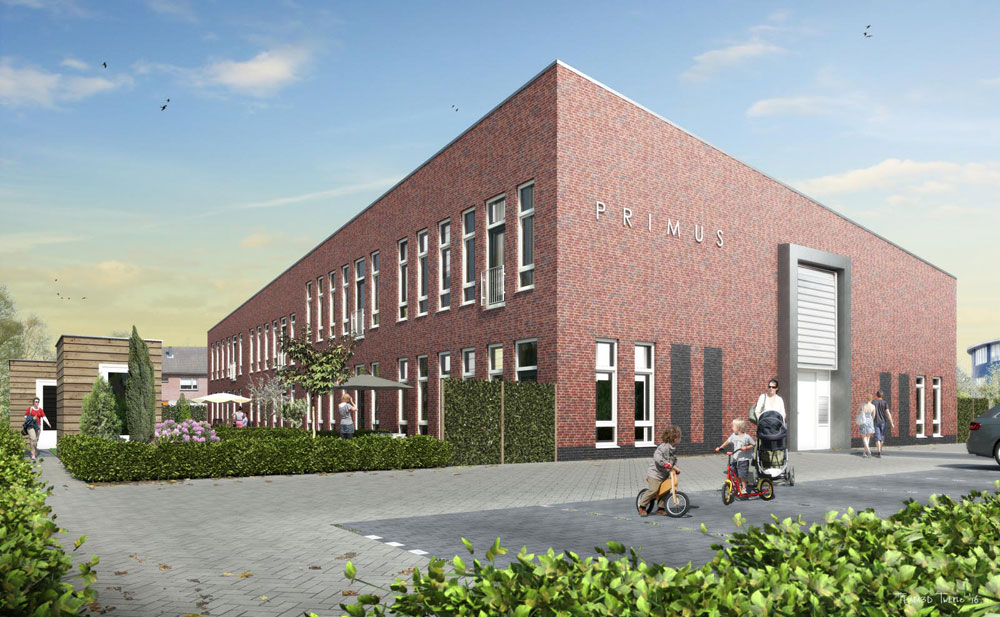 Primus, zo gaat het nieuwe appartementencomplex aan de Willem de Vlaminghstraat in Almere heten. Primus is het Latijnse woord voor 'eerste'. Waarom deze naam? Omdat het de allereerste transformatie is van een pand dat is gebouwd in opdracht van de gemeente Almere. Een primeur dus. Het gaat om de transformatie van een schoolgebouw naar een appartementencomplex met zestien woningen in Almere-Buiten. Patrick Hafkamp van Ennovation uit Twello is de ontwikkelaar. "Toen het pand vorig jaar in de verkoop kwam, heb ik gelijk de tekeningen opgevraagd, vervolgens ben ik gaan kijken. Al snel werd duidelijk dat dit een ideaal gebouw was om er appartementen in te realiseren.."