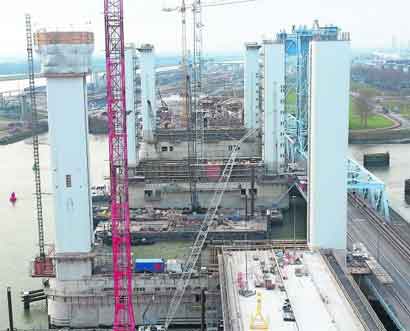 Binnen het project A15 Maasvlakte-Vaanplein is gisteren het laatste beton gestort voor de zesde heftoren van de nieuwe Botlekbrug.
