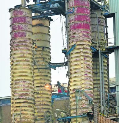 Op het Chemie Park Delfzijl werken medewerkers van Van Vliet Sloopwerken uit Utrecht aan de demontage van de oude sodafabriek, oorspronkelijk van AkzoNobel.